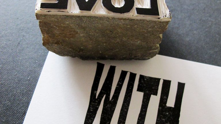 With Love, tampon gravé, réalisé en partie avec un pavé.