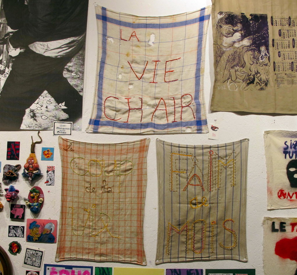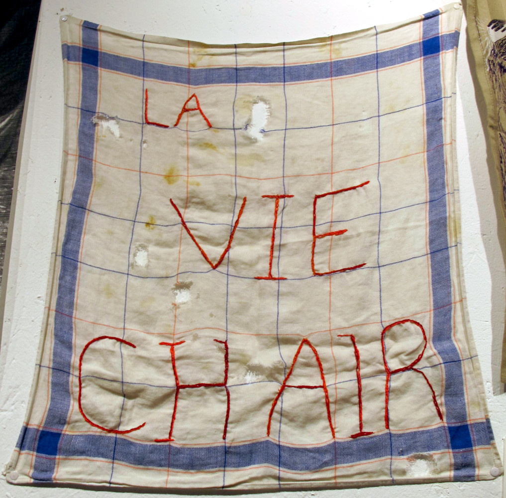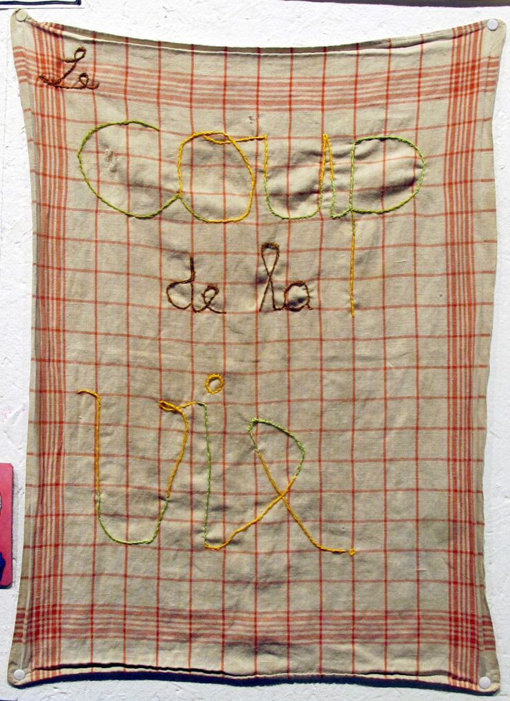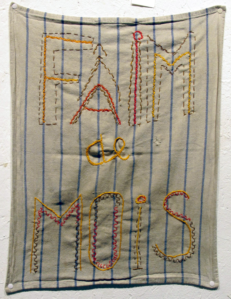 Petite série de torchons usés et brodés pour exprimer les tracas de la vie, son usure et les « faim de mois » économiques.
