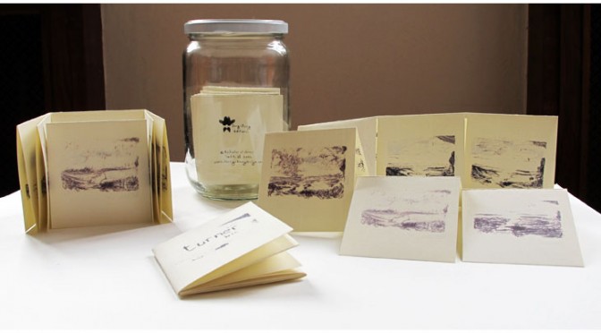 D’après des dessins réalisés au stylo bille, création d’une micro-édition au petit format. Un livre à contempler comme on veut et pouvant être disposé comme on veut aussi. A emporter absolument dans une micro poche !
