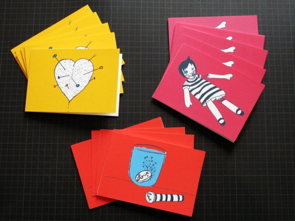 ZouiZoui cartes postales (2012) Cartes postales d’anciens dessins (2006) imprimées sur du papier Steinbach 250g. Portfolio Date: 2012Portfolio URL: https://bang-bangdesign.com/zouizoui-thinkings-2006/Portfolio Client: Bang-Bang Editions